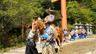 2026年4月11日(土)は、香取神宮表参道に馬場が設けられ、第1駐車場~朱大鳥居まで流鏑馬が行われました。神事「流鏑馬」は弓馬術礼法小笠原流の御一門により執り行われ、馬上の射手が次々と3つの的を射貫く姿はとても勇壮で圧巻でした。